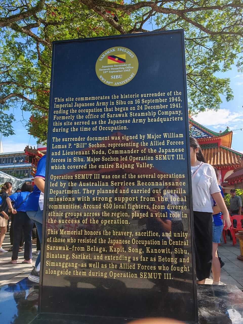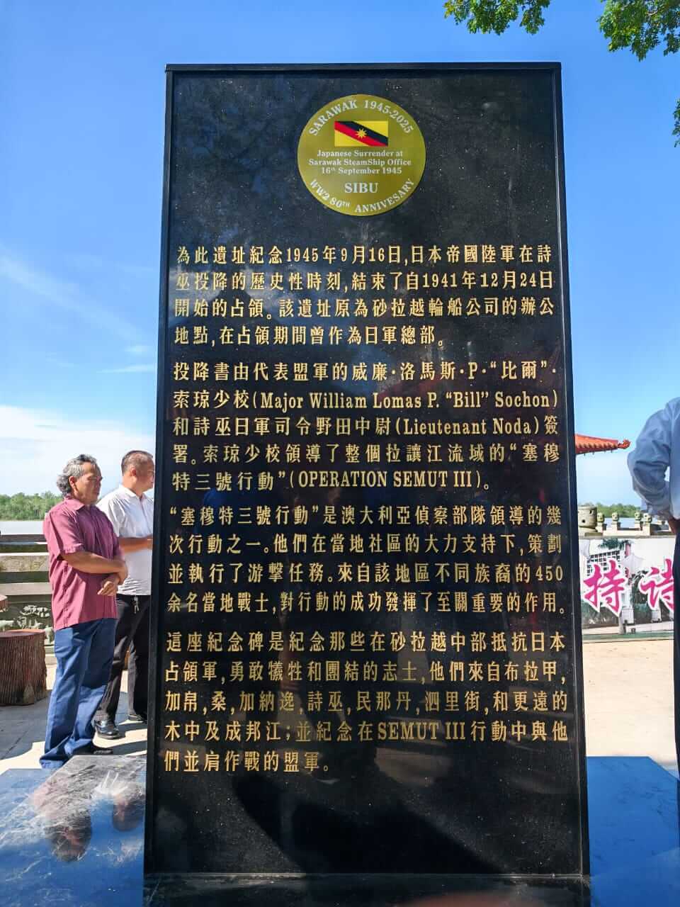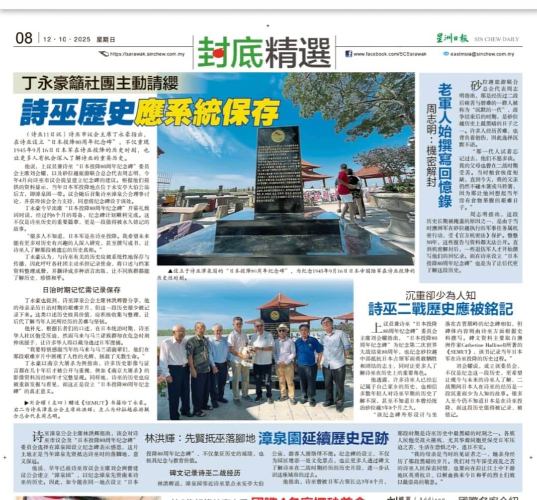 出席假漳泉园(永安苑)与诗巫市议会及漳泉园维修小组单位 联合进行坚立在漳泉园范围内的【日本投降80周年纪念碑】开幕仪式。