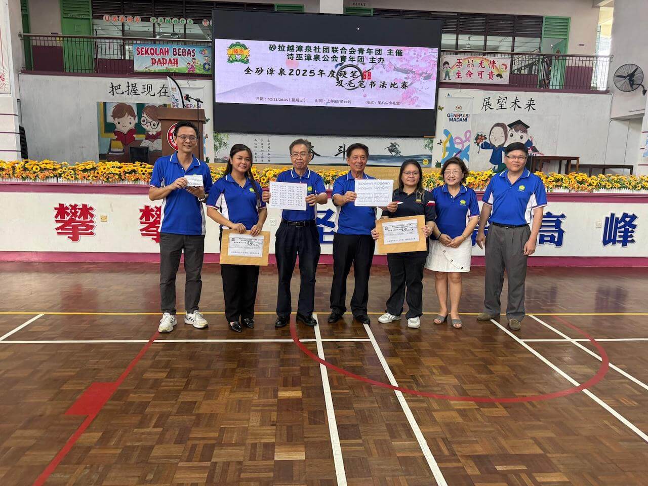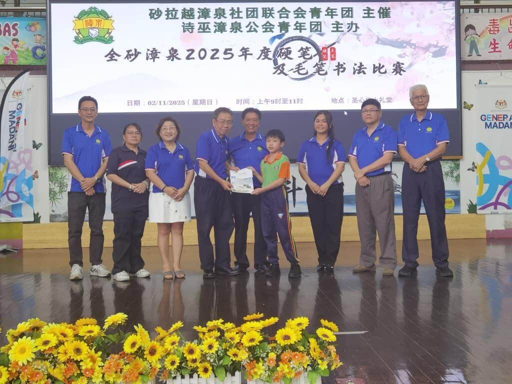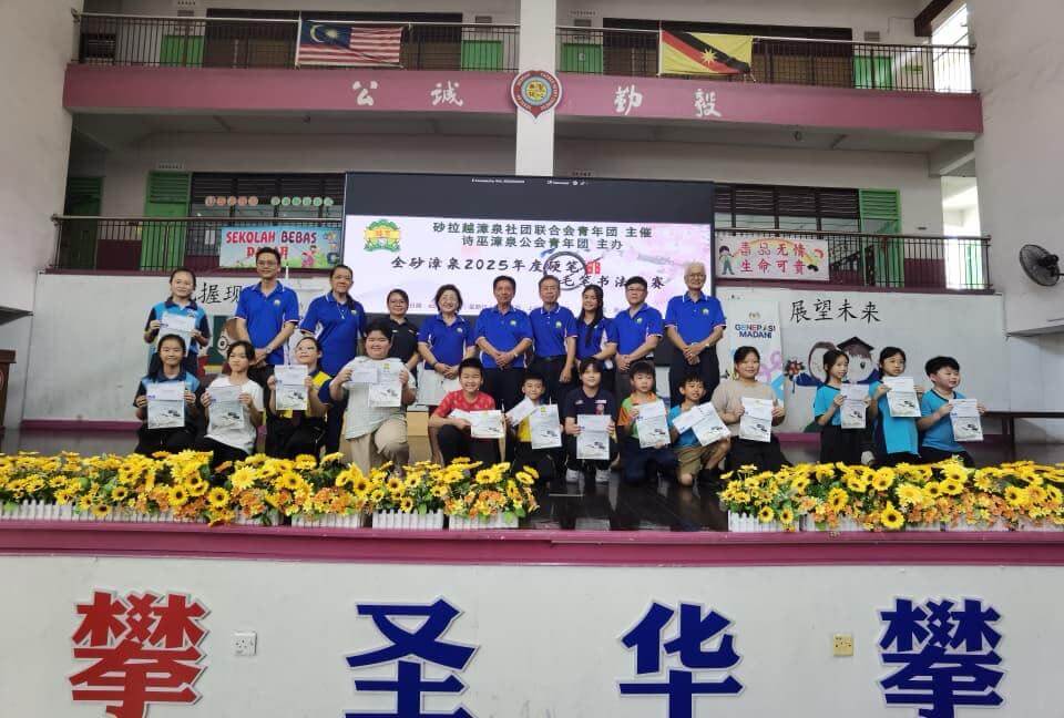假圣心华小礼堂由砂拉越漳泉社团联合会青年团主催,本会青年团主办【全砂硬笔及毛笔书法比赛】。此活动吸引了逾100多名高/低年级的 小学生报名参与,反应热烈。
